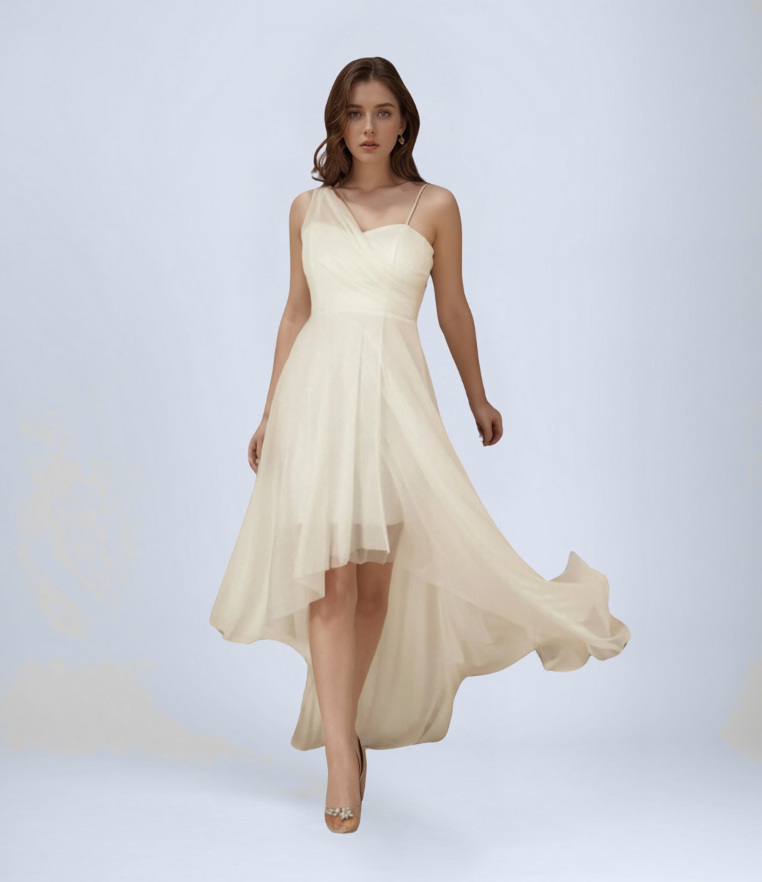 Katlı Midi Boy Simli Tül Abiye Elbise