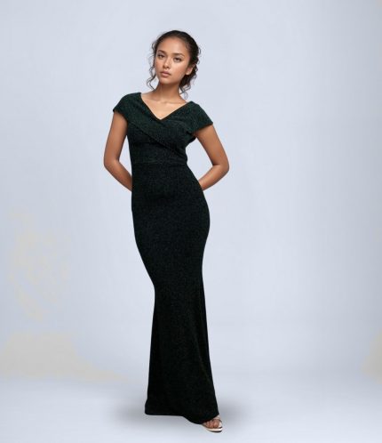 Metalik Simli Abiye Elbise – Zümrüt, 38
